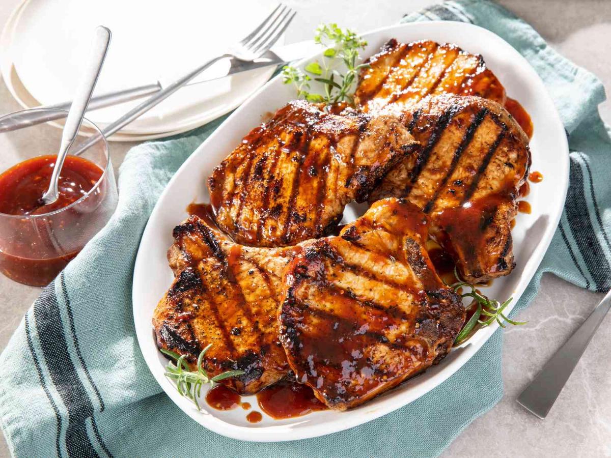 Four of our thick cut pork chops grilled to perfection. Comes with two family sized side choices and our house pork chop sauce.