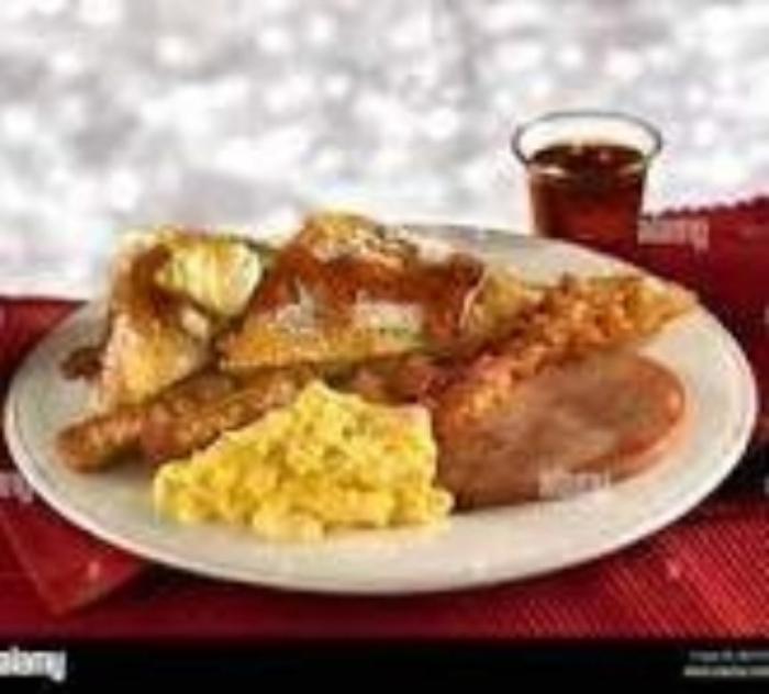 Your Choice of French Toast, Pancakes, OR Waffles with scrambled eggs (with or without cheese.) Served with choice of two breakfast meats.
