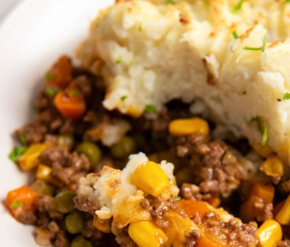 Sautéed Angus ground beef, mixed vegetables and topped with our red skinned mashed potatoes. Served with a small garden salad.