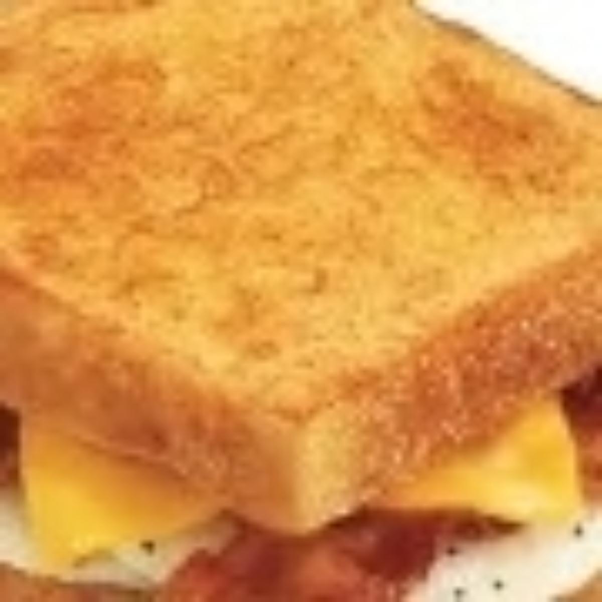 Served on grilled Texas toast, topped with an over hard or over medium egg, bacon, and cheddar cheese.