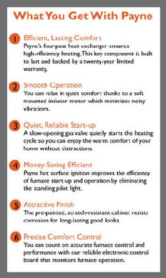 When you choose Payne, you can expect comfort and savings to continue for years because our products are designed, built, and tested for long lasting operation. This 80% AFUE (Annual Fuel Utilization Efficiency) furnace easily saves money on operation compared to older, less efficient models while delivering years of reliable performance backed by Payne. This furnace includes two stages of heating and a variable-speed ECM motor. This blower motor provides: longer, more gentle cycles, reduced sound levels, and outstanding electrical efficiency. The PG8MVA features a variable-speed motor. This technology saves you money year-round on electric bills while being extremely quiet. Saving money never sounded so good. What you get with Payne - 1 : Efficiency that lasts — Our 80% AFUE furnaces save money on operation compared to older, less-efficient models. And Payne stands behind their reliable performance, season after season. The heat exchanger, for example, is specially designed for lasting corrosion resistance and durability and is backed by a 20-year parts limited warranty. 2 : Reliability — The hot surface igniter makes sure you can count on heating when you need it. 3 : Responsiveness — We did get a little fancy with our advanced electronic control for reliable activation and continuous monitoring of the system. 4 : Motor options — The broader the spectrum of speeds a motor can accommodate, the more efficiently and quietly the furnace heats and circulates the air. We offer furnaces with standard, multi-speed and variable-speed motors.