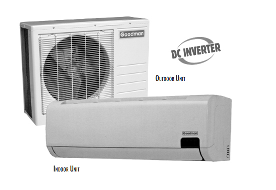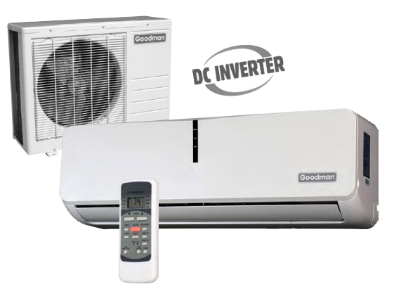 The Goodman® brand Ductless Mini-Split Air Conditioning and Heat Pump Systems use inverter compressor technology to maximize both performance and temperature control. An inverter allows the mini-split to continuously regulate the thermal transfer refrigerant flow by altering the speed of the compressor in response to the thermostat’s demand for heating and cooling. This technology eliminates the all-on/all-off or stop-start cycles of some non-inverter compressors. Eliminating the stop-start cycles helps to increase compressor efficiency and extend the life of compressor components. The inverter also helps reduce sharp fluctuations in the electrical load placed on a home’s electrical power supply by an air conditioner or heat pump. Product Features R-410A chlorine-free refrigerant DC inverter technology compressor Remote control indoor antibacterial fan Odor-capture carbon filter Easy-to-read LCD display Follow-me remote control (ambient temperature at location of remote control determines actual heating or cooling demand communication) Turbo settings for fast heating or cooling Sleep-mode setting (7 hours off-cycle) Auto-restart temperature setting (remote memory automatically set thermostat at last stored temperature setting) Bi-directional airflow for optimal air distribution Easy-to-clean indoor exterior panels Includes 5-meter line set