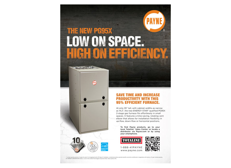 Added Comfort with Two-Stage Heat from Payne With efficiency of up to 95.5%, the PG95X offers quiet operation and the reduced drafts through your home. Our stainless steel secondary heat exchanger extends heat transfer for higher efficiency use of fuel. The secondary heat exchanger wrings out additional heat energy to make it available to your home. You’ll also benefit from an increase in the overall SEER* of your air conditioning system thanks to the electrically efficient blower motor that smoothly and quietly delivers comfortable air throughout your home. Payne is excited to offer a family of furnaces featuring an enhanced blower motor. *As compared to the Air Conditioning, Heating and Refrigeration Institute’s standard coil-only rating when paired with selected Payne evaporator coils.