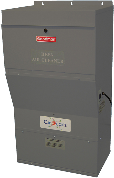 igh-efficiency Goodman brand media air cleaners, electronic air cleaners, and HEPA filters can improve your HVAC system's ability to filter allergens and other particles from your home's indoor air. Here is a partial list of particles that enhanced air filtration can capture and remove. Dust and Dust Mites Pet Dander Tobacco Smoke Bacteria and Viruses Pollen Cooking Grease and Smoke High-Efficiency Electronic Air Filters With a 4-stage air cleaning process, pre-filters, charging section, grounding plates and carbon filters, Goodman brand electronic air cleaners can efficiently remove atmospheric and household dust, coal dust, insecticides, dust mites, pollen, mold spores, fungi, bacteria, cooking smoke and grease, pet dander, tobacco smoke particles and other indoor air particles as small as 0.01 micron in size